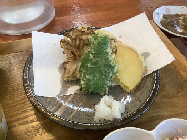 ちょっと迷いましたが天ぷらも捨てがたく改定そばランチに自然薯単品追加で