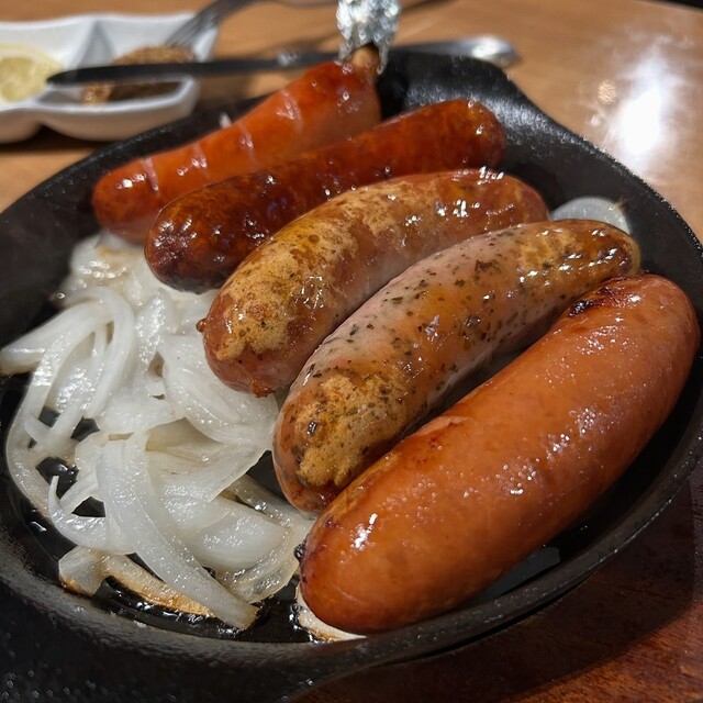 想像以上にパンチのあるボリュームで驚くつくね盛り合わせ。ウインナー盛り合わせも太くて驚き。