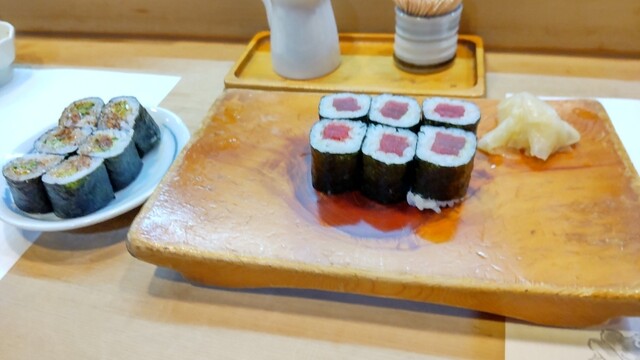 いつもの、鉄火と干瓢巻き。干瓢には当然、わさび入り。