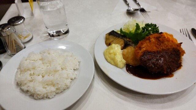 Aランチ、チキンかつと鰆のバター焼き 1150円