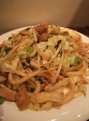 岡山からソースを取り寄せて作ったこのホルモンうどん。