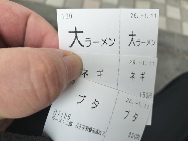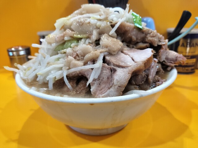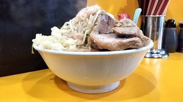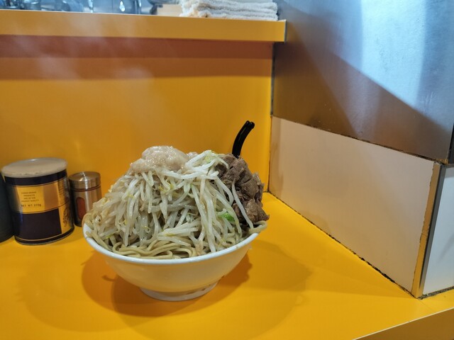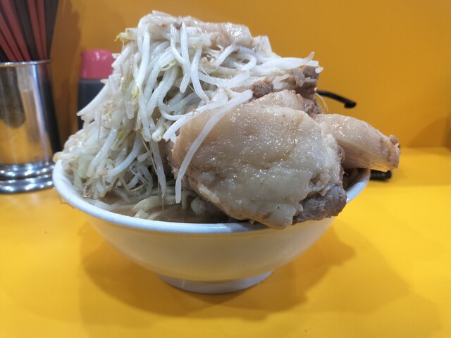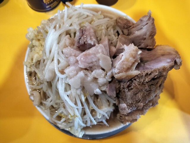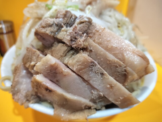 その会話を聞いている隣で、これは見られてはまずい[大ラーメン]と[ブタ]の食券を握りしめてるオレ。自分は毎回大ブタで、二郎食った後、その帰りに牛丼とか食べたりするし、なんなら野猿→相模大野とかの二郎連食したことさえある。今回も野猿二郎は3週連続で朝一に大ブタ食ってるし。個人差かな?食欲だけは一切衰える気配なし。これって元気の証なのか、それとも別の方向でやばいのかな。