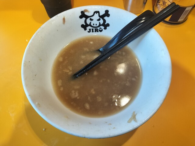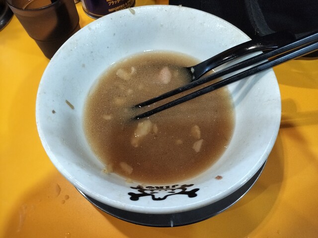 しかし、店主の反応を見てみると… 冷ややか、少し振り向く程度、笑顔ゼロ、そして、環境省のデシベル基準でいう “静かな図書館(約30db)” レベルの、口の動きで読み取るタイプの「(ありがとうございました)」で、声量も限りなくゼロに近い。この二人の温度差は、もはや芸術。野猿二郎はラーメンだけでなく、人間ドラマの濃度まで特盛だ。