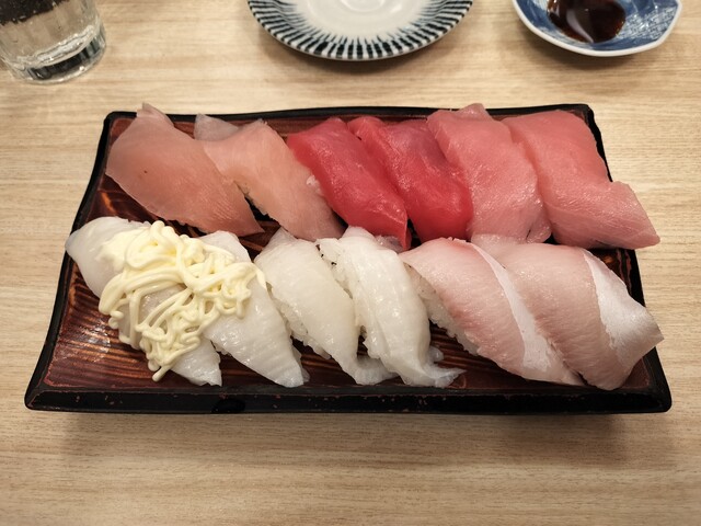 12貫(鮪中とろ、鮪赤身、びんちょうまぐろ、えんがわ、えんがわマヨ、ブリ×2貫ずつ)
