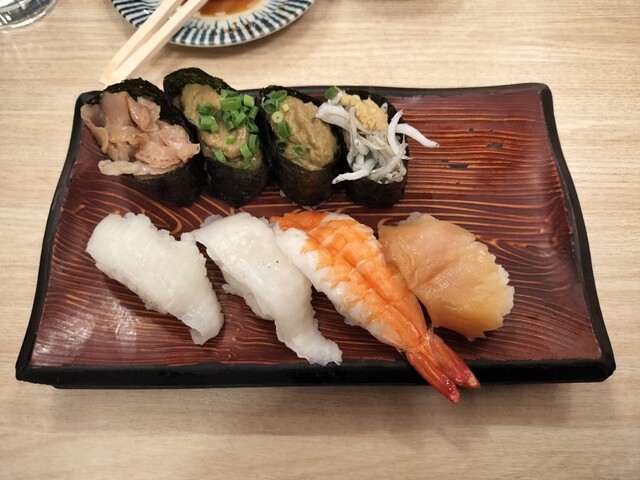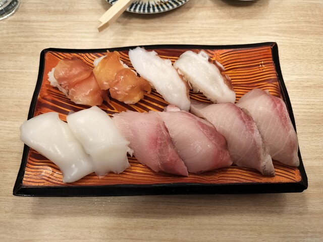 6貫(赤貝、ほたて、とり貝、穴子、いかげそ、子持ちこぶ×1貫ずつ)