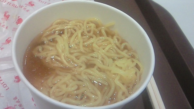 最初に麺だけかじってみると、少しやいてあってほんのり焦げ目が付いていて、胡椒の味がほんのりします。