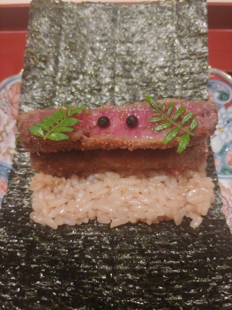 さらには、ヒレカツ巻き。海苔で巻いたヒレカツとごはん、こんなん美味いに決まってるじゃんね。タンはタンモトでフレッシュなレモンとオレンジの間くらいのフルーツを絞っていただくのですが、うんまいのです。圧巻なのはトリュフ乗せしゃぶしゃぶなんだけど、これは言わずもがな…玉子を付けてお肉がとろけちゃいます。割下も玉ねぎと黒トリュフが旨さを引き立たさせておりウマウマすぎてビックリした。