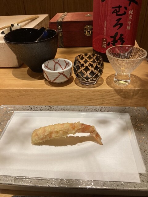日本酒のメニューはないそうで、おススメを何本か見せてくれその中から選ぶシステムらしいです。天ぷらは上がった順にひとつづつ給仕されアッツアツ。お蕎麦は4種。つけ汁は数種類用意され最後のひとつは選択できます。自分はくるみ、ツレは鴨汁。胡桃ダレ濃厚で美味でした。お蕎麦は少量づつ産地別に出され良い素材を丁寧に打っているのがわかります。最後は『すだち蕎麦』