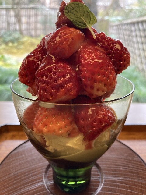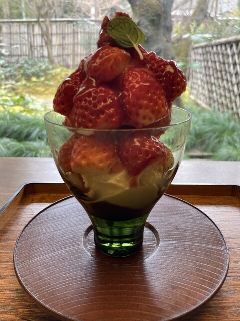 甘味だけの(席だけの)予約はできないそうで12時過ぎには外に行列ができていました。配膳の方によると冬場より夏の方が混雑するとか(映えるカキ氷目当て?)