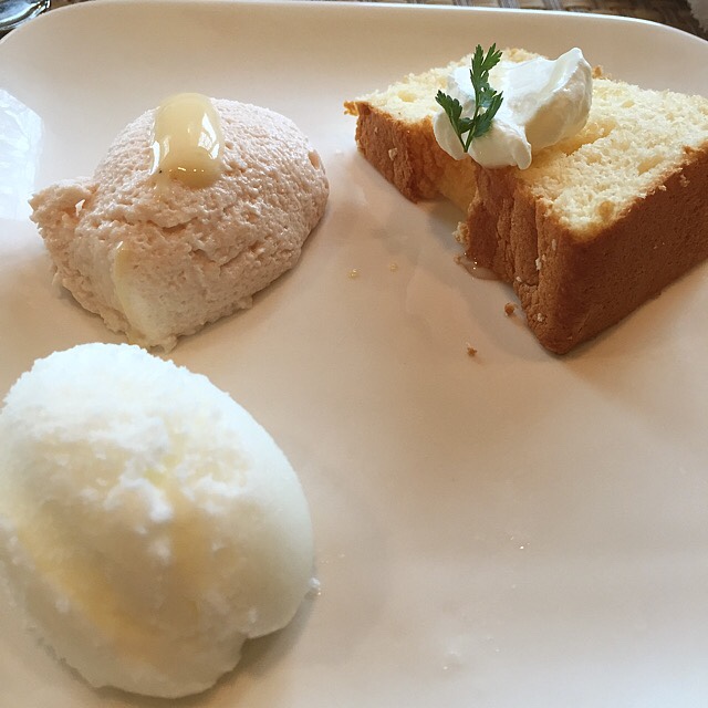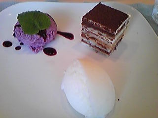デザートはカシスのムースとヨーグルトシャーベットとティラミスっぽいケーキ。どれも食べやすく美味しく頂きました。カシスって味がきつくて食べにくい時も私はあるのですが、まろやかで食べやすかったです!ヨーグルトシャーベットはさっぱりして良かったし。