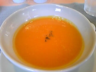 その後、スープが出てきました。かぼちゃのスープでしたが、かなり濃厚!かぼちゃをそのまま潰しました、って思えるくらい濃厚でした。勿論色々と入ってまろやかにはなってるんですけど。野菜の素材の味がよく出てて美味しかったです。