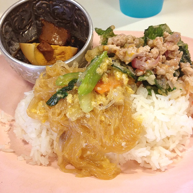 日替わりおかずの2種盛り(700円)・3種盛り(800円)とカオマンガイとパッタイが基本毎日ランチにあります。