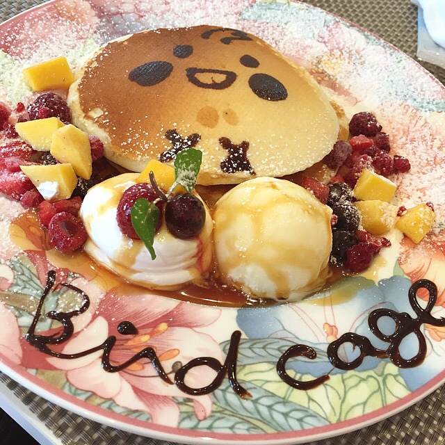 鳥の絵が描かれたパンケーキ\(^o^)/可愛すぎて食べるのもったいなかったです!味も美味しい♡