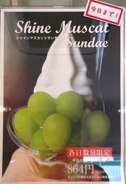 『シャインマスカットサンデー』・・・¥864円(税込)平日20個土日30個の限定販売が本日終了
