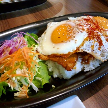 味噌豚たまご飯の卵をダブルにし、