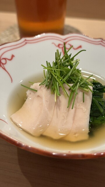 軍鶏胸肉春菊のお浸し