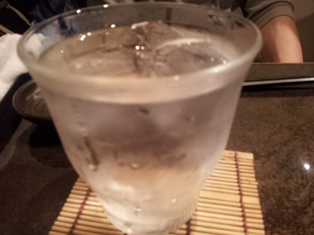 母は麦焼酎。水割りです。