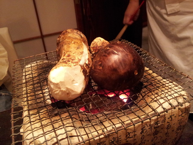 青木さんが、目の前で、松茸の角度を変えながら、丁寧に焼いて下さいます。