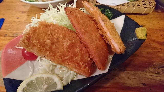こちらのハムカツ、ハム薄めで衣カリカリで、相当好きなタイプのやつなんですけども、この枚数を見てください。