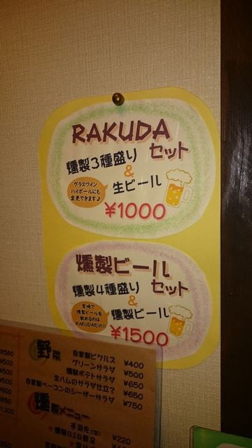 で、壁のメニューを見ると、「燻製ビールセット¥1,500」なるものを見つけました。