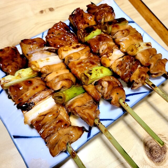 お店に入ると、丁寧に串打ちされた焼き鳥が冷ケースにズラリ