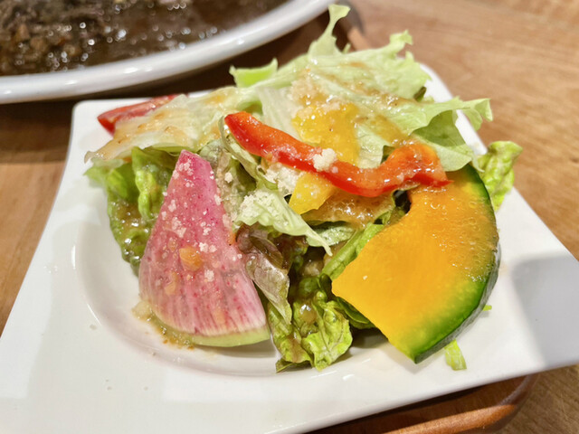 サラダもボリュームあって、つけあわせも初めてもので嬉しい(*^_^*)