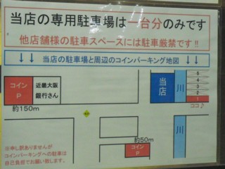 お店の駐車場は橋を渡ってすぐのところに1台分のみ有ります。