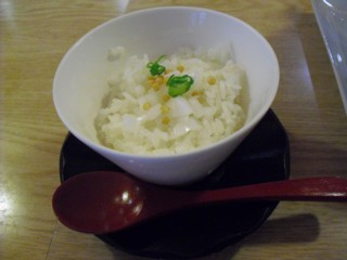 このご飯にスープの底に沈んだなめ味噌ををのせ、スープをかけてミニ雑炊にしていただきます。