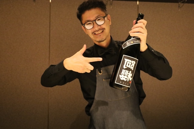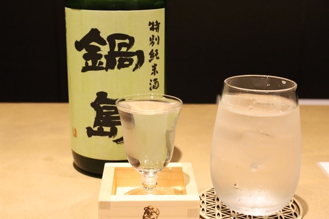 福島県南会津の銘酒『十ロ万純米大吟醸』が登場。スタッフの方々のノリノリなパフォーマンスに合わせ、私もついついグラスを傾けてしまいます。