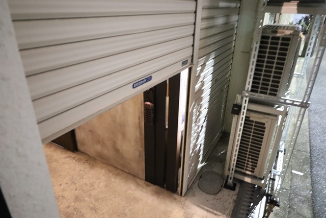室外機が縦にずらりと並んでいるのを見て、これは一般の家ではないと気づき、半開きのシャッターをくぐりました。
