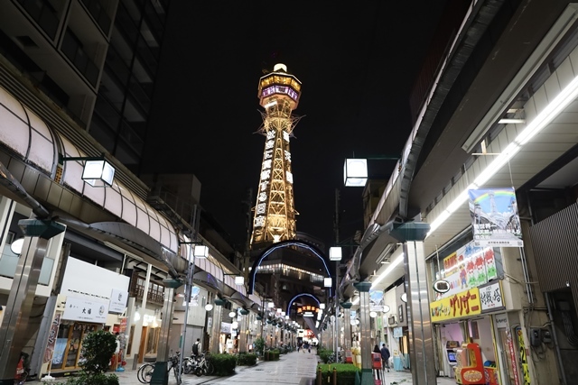 恵美須町駅3番出口から「通天閣本通」を歩き、通天閣方面へ。