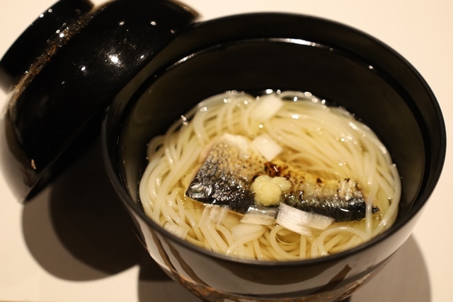 北海道産の秋刀魚を香ばしく焼き上げ、上品な出汁がしみ込んだ温かいにゅうめん。