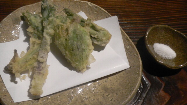 季節の揚げ物・・・行者ニンニク、ふきのとう、タラの芽、もうひとつは分からなかったです。