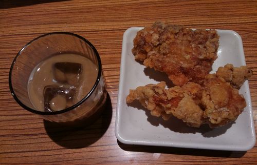 揚物が充実してます。唐揚げもおいしいし。この間、近所の中華で食べたものより2ランク上です。例のコロッケは、ヲジサンが2個目取ったあと、半分カットで出てきました。時すでに遅し