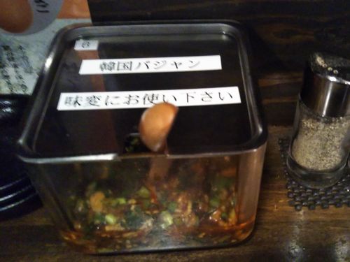 テーブル調味料は、韓国バジャンだそうです。辛味噌なのかな。