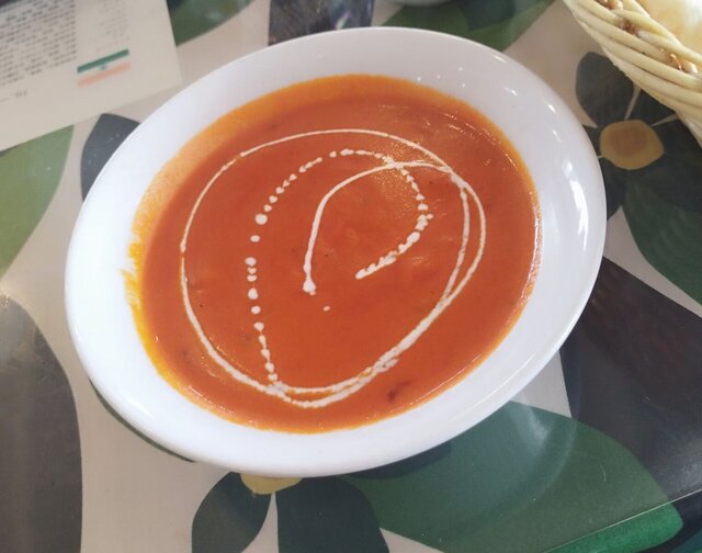 マンゴーラッシー。ドリンクバーとスープバーがあるので時間つぶしが出来ます。メインが来るの遅いとか、マンゴーラッシーがちょっとしか入ってないとかは気になりません。気にしているじゃないかというコメントは受け付けません。サラダはインド料理のスタンダードドレッシング。トマト薄切りが乗っています。