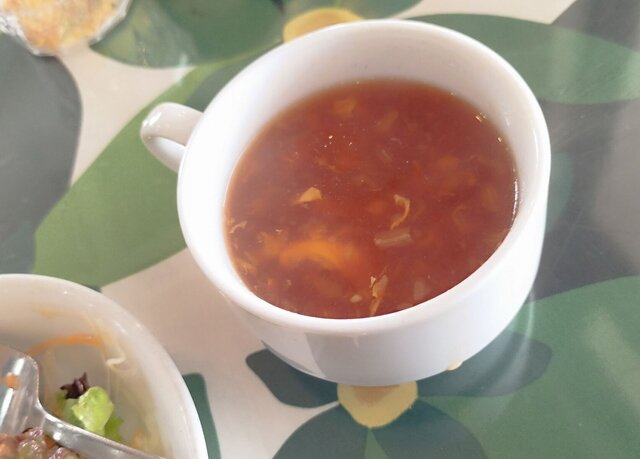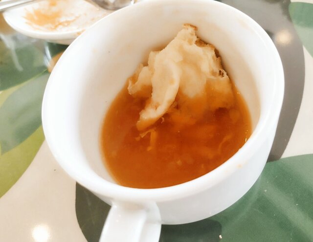 スープを取ってきました。左下に人の握りこぶしのようなものが写っていますが、夢の世界ではありませんでした。