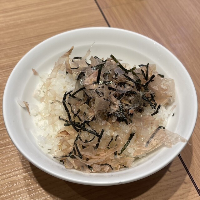特製の煮干オイルと醤油ダレで味付けした小麦が香るモッチモチ自家製麺に、チャーシュー、煮干、メンマ、紫玉葱といった具材を合わせます。コチラもやや塩味強めで、煮干し出汁が香るお味噌汁をチェイサー的に味わいながら楽しめます。〆として #追い飯 は必須ですね。