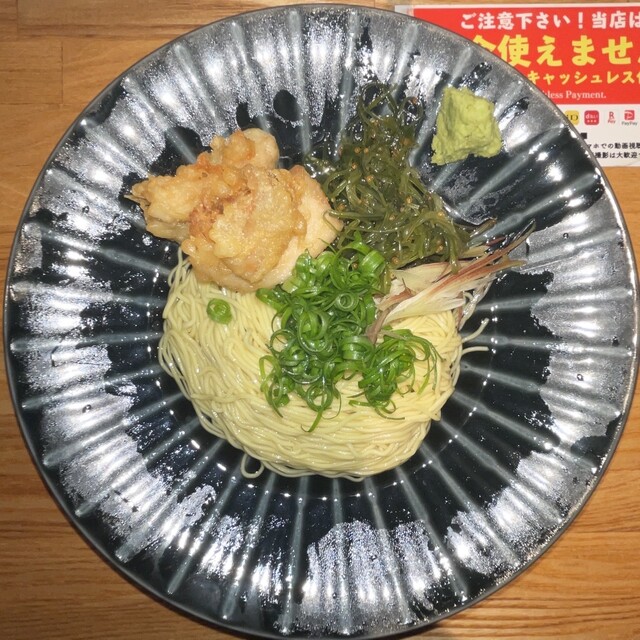#昆布出汁 に浸したラーメンの麺を,自家製の麺つゆで #そうめん のように食す,簡単に言えば #つけ麺 で,福岡では居酒屋の品として有名だそうです。