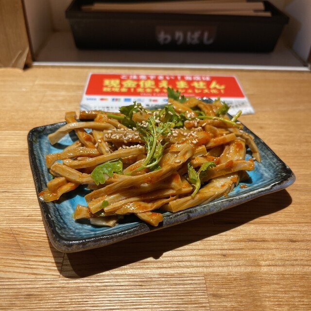 メンマに #パクチー を合わせて辛味噌と和えただけ!らしいのですが,相性抜群で簡単だから家でも試せる,ハズ!