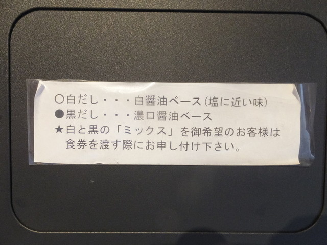 味は黒だし、白だし、ミックスとあって、黒だしで食べ比べたいところだが、どうしても白醤油の白だしが気になり、白だしのチャーシューエビワンタン麺にした。