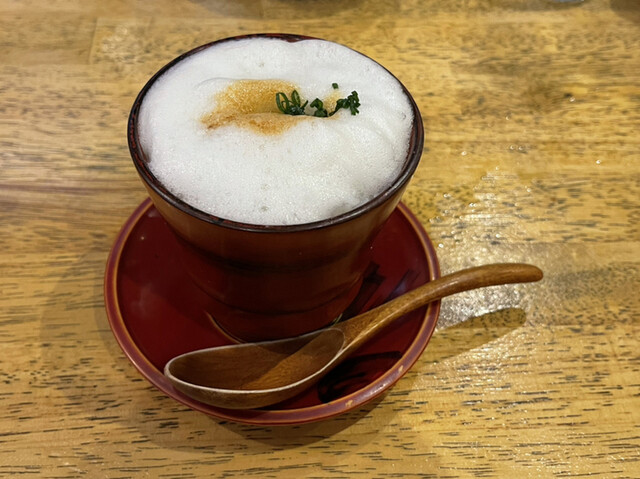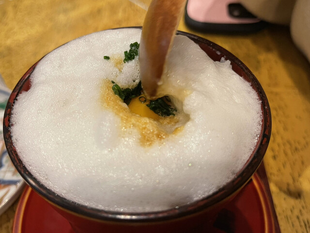 最後に、私は、殻付きほっき飯、連れは、名古屋コーチンのTKG。これは、どちらもびっくり。ほっき飯は、殻付きの意味が出てきてわかった。ほっき貝を焼いて、ほっき飯にして殻に盛り付け。TKGはメレンゲを泡立てて、その中に黄身とご飯があるという。なかなかおいしかった。