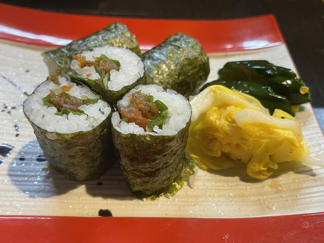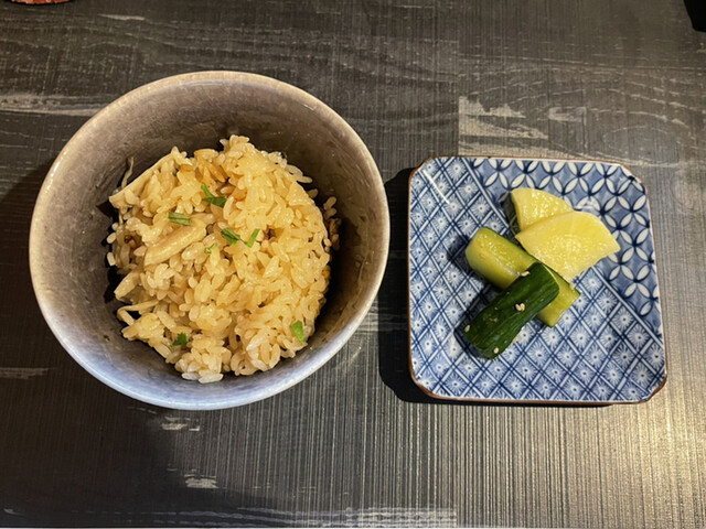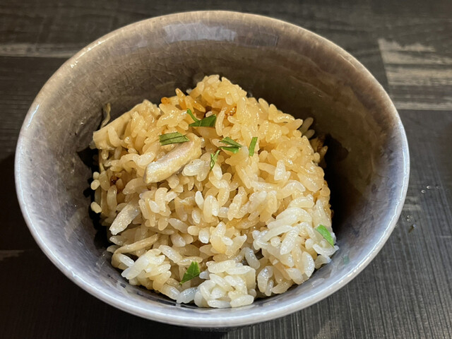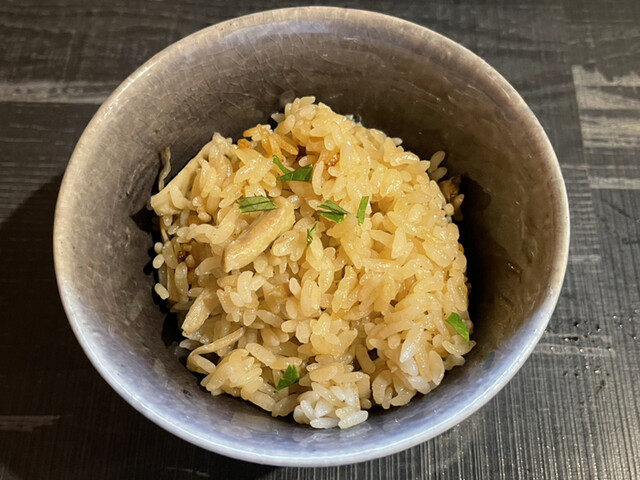 〆は、じゃこと大葉ご飯。毎回、〆のメニューが変わっていて、つい食べて帰っちゃうが、いつもおいしい。
