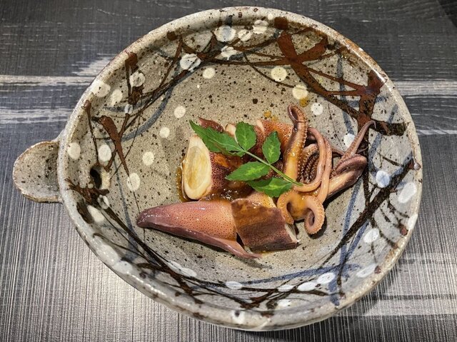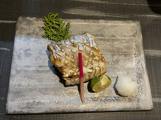 お刺身は、あおはた、〆さばに。あおはた、まはた、赤水は、あれば必ず頼む。山陰のはた、めばる系の魚はどれも刺身でおいしい。〆さばは、マスターの絶妙な〆加減でこれも毎回いく。