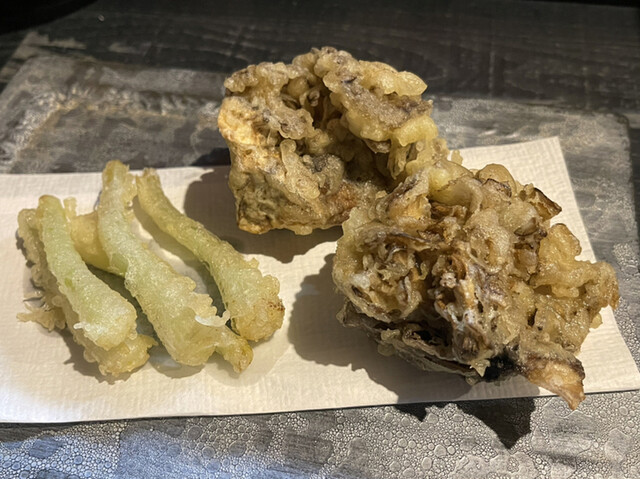舞茸天ぷらは、奥出雲のつぼみのようなのが好きだが、今日は今年初めて見る。ちょっと小さいが味はおいしい。