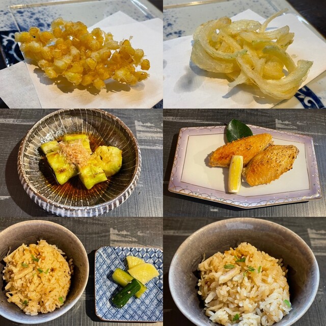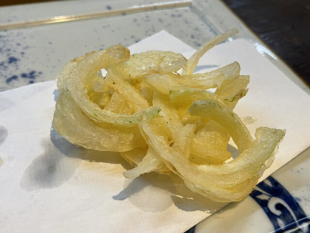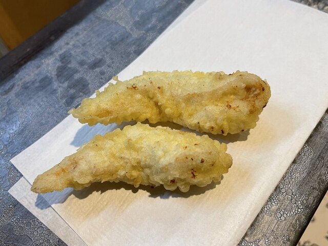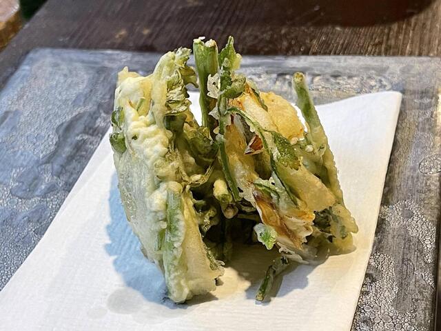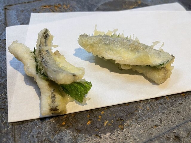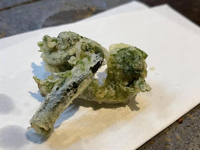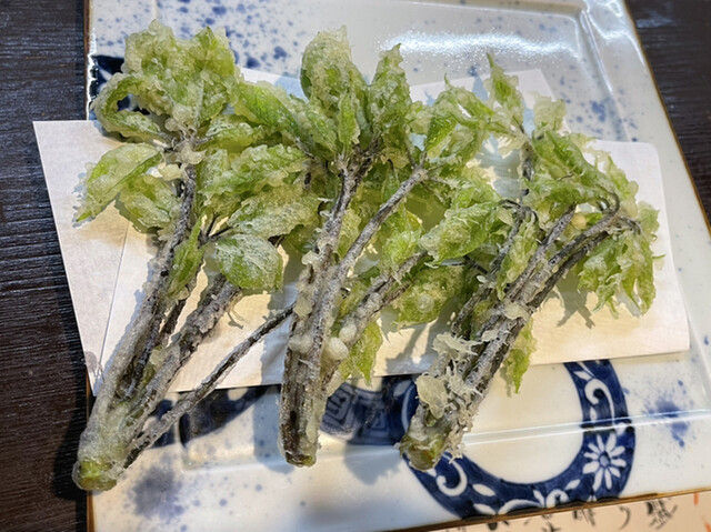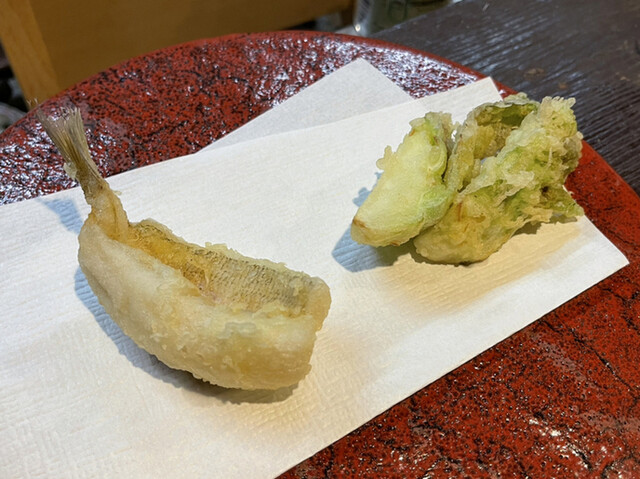 また天ぷらをお願いして、さより、たらの芽、こごみ、鶏天タルタル、地穴子を。