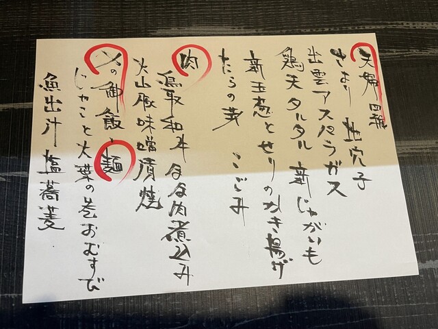 今日は出汁巻、奥出雲の舞茸天ぷらと、お気に入りを食べることに。