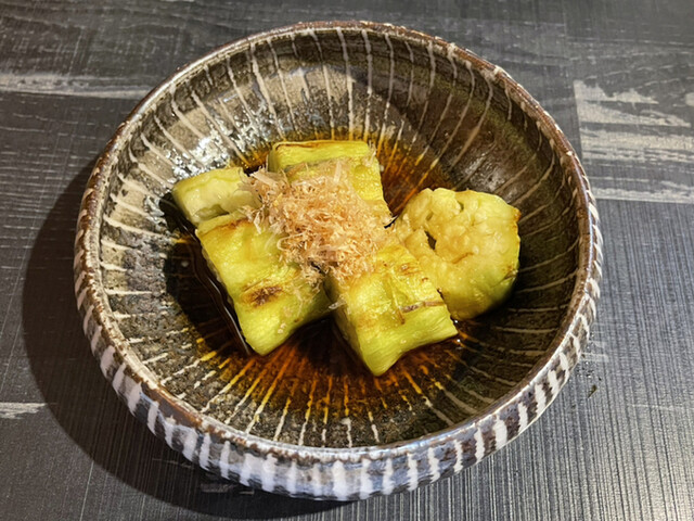 白茄子焼きは、けっこう大きい茄子一個を焼いてくれる。