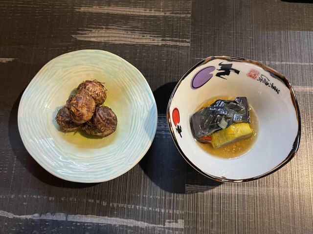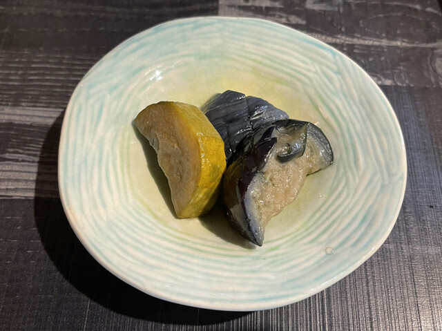といっても、焼き茄子と、さくら卵の出汁巻。ご飯がほしいが我慢する。