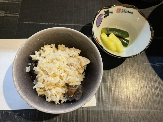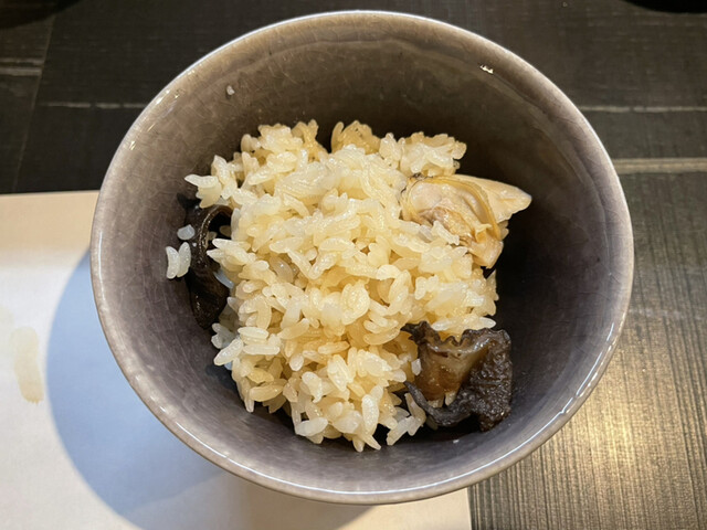 最後は、蛤酒蒸しに、蛤と生きくらげご飯。蛤攻めだ。〆のご飯や麺のメニューがいつも変わって、これが楽しみになっている。